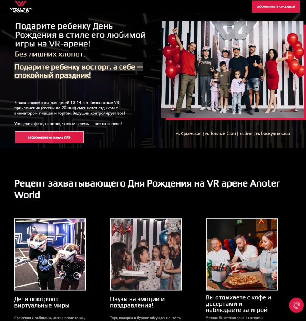 Что сделано: сайт на Tilda с интерактивными элементами, видео блоками, квизом "какой ваш идеальный день рождения". Настройка call tracking.